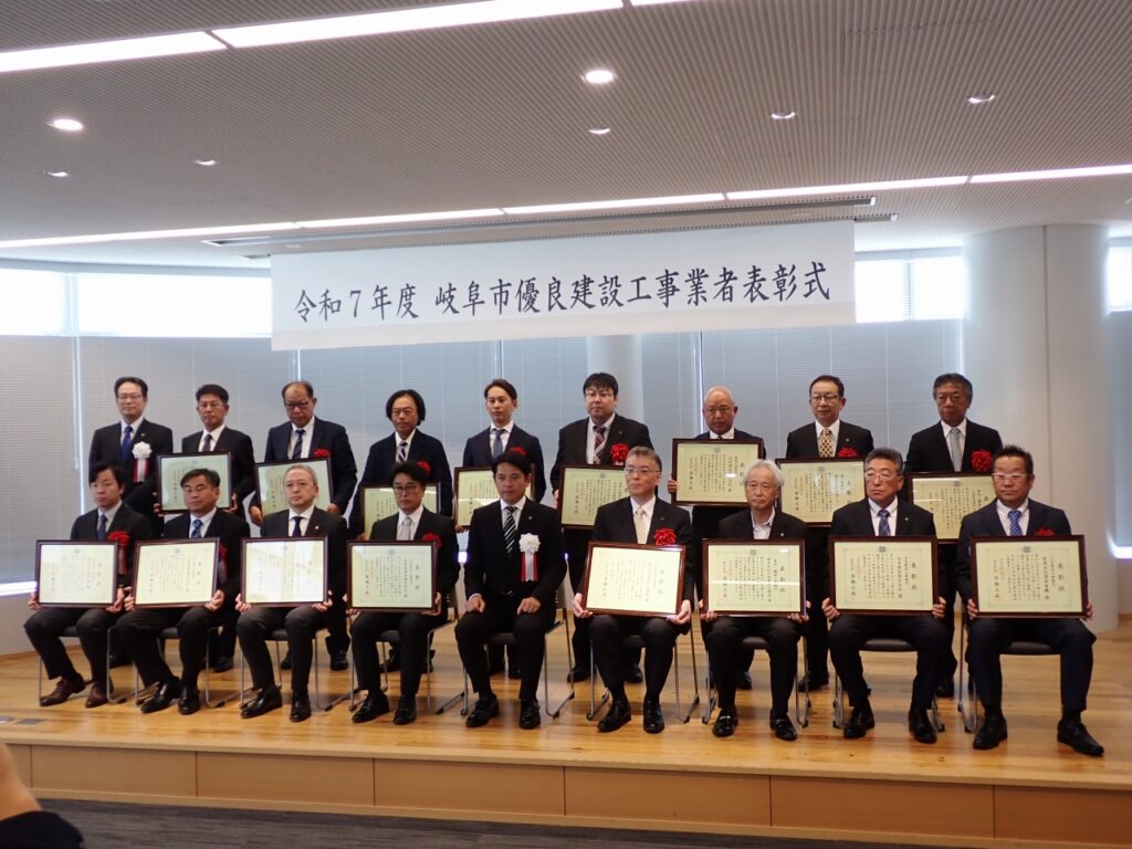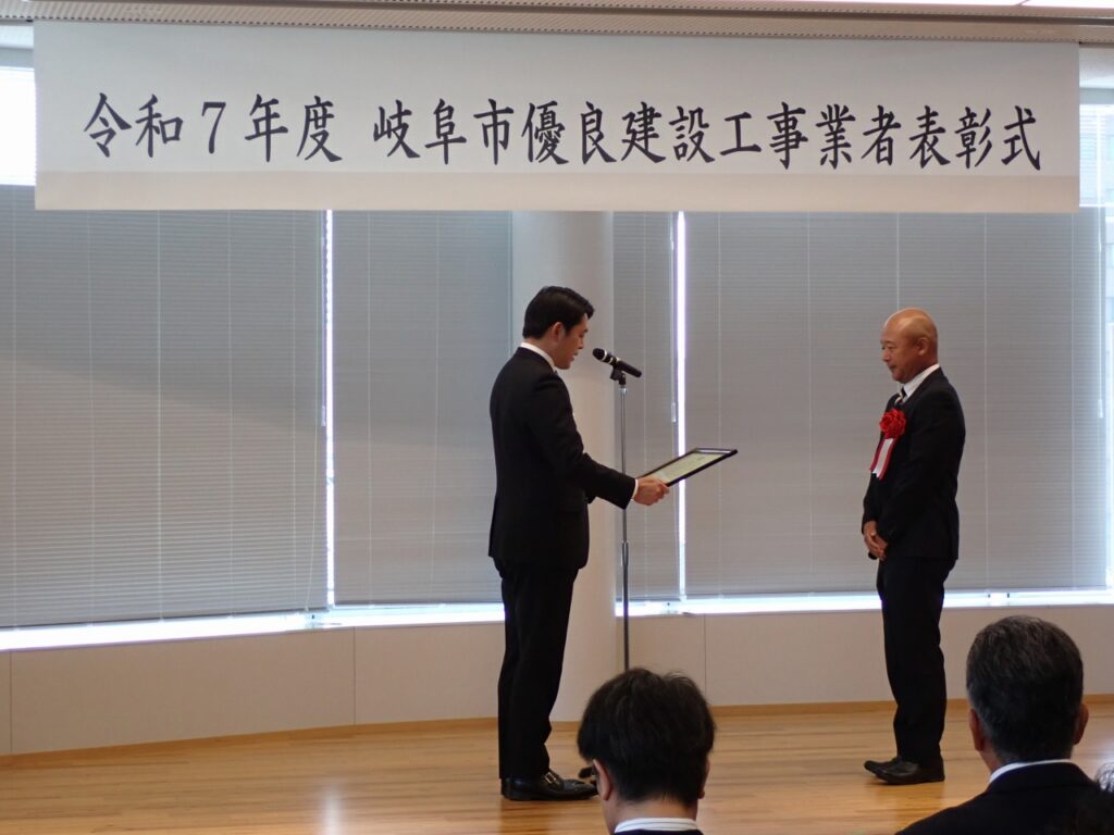 この度、建築工事部門において岐阜市優良建設工事業者として表彰をいただきました。